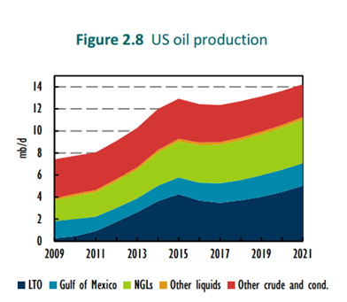 The IEA forecasts in its “medium-term” outlook for the next five years that US production will fall by 600,000 barrels per day (b/d) this year and 200,000 next year as the so-called “fracklog” of drilled wells is finally cleared and the global market works off a surplus of 1m b/d.